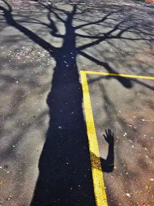 Dans cette banalité du quotidien surgit tout à coup le fantastique. L'arbre et le photographe ne font plus qu'un. Mais le doute s'empare alors du témoin de cet instant insolite : De l'arbre ou de l'homme, qui se métamorphose ? En tout cas, l'un et l'autre franchissent cette ligne jaune, comme Alice basculant de l'autre côté du miroir.