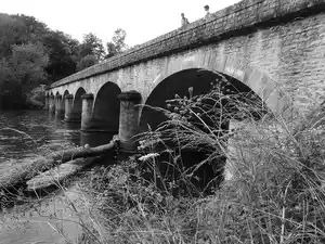 L'eau coule inlassablement et modifie à chaque instant notre perception de la rivière. Du haut de ce pont, deux adolescents observent : l'un semble perdu dans une contemplation, ses pensées portées par le courant de la rivière. L'autre m'a vraisemblablement repéré et me regarde fixement. A quoi pense-t-il ? Je l'ignore. Comme l'eau qui passe sous ce pont, ses pensées filent et vont dériver au gré de sa fantaisie. Comme l'eau qui passe sous ce pont, jeunes hommes en devenir, ils ne sont plus aujourd'hui ce qu'ils étaient à l'instant même de cette prise. Comme l'eau qui passe sous ce pont, l'histoire de cette structure est une remarquable illustration de ce monde en perpétuel mouvement. En effet, il a été construit en 1865, en partie avec les pierres restantes des piles de l'ancien pont qui se situait à 200 mètres de là et qu'empruntait alors la grande voie romaine reliant Lyon à Saintes.