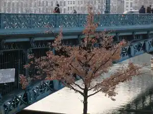 Dans la froidure hivernale, les passants vont en viennent sur le pont de l'Université sous lequel s'écoulent - comme au ralenti - les eaux miroitantes du Rhône majestueux. Mais mon regard s'est, finalement, posé sur cet arbre frêle, encore paré de son costume automnal. Il essaie de se hisser au niveau du pont dans l'indifférence générale... je voulais ainsi lui dire qu'il existait !