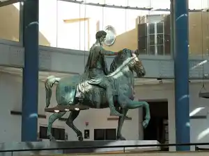 Il était 12:00 depuis quelques minutes. J’étais en train de dessiner écoutant, un peu distraitement à vrai dire, les commentaires bienveillants de deux touristes français. Soudain, ma main lâche mon crayon récalcitrant et se pose spontanément sur mon appareil photo. À ce moment précis, je lève les yeux : un rai de lumière se pose délicatement sur la statue équestre de Marc-Aurèle. Dans le viseur, le regard de l’empereur et de l’animal semblent converger vers moi. À l’instant du déclic, je saisis le message intimidant de cette image : puissance et gloire.